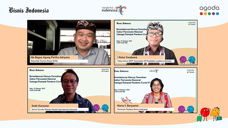 Jakarta, Media-profesi.com – Seiring pertumbuhan tingkat vaksinasi, dimana dunia dan Indonesia bergerak menuju era new normal, platform perjalanan digital global Agoda menggelar webinar bertajuk Berkolaborasi Menuju Pemulihan Sektor Pariwisata Nasional  Sebagai Dampak Pandemi Covid-19 pada 13 Oktober 2021 untuk membantu para mitra hotel skala besar dan kecil mendapat wawasan dan ide yang dapat membantu mereka dalam pemulihan.