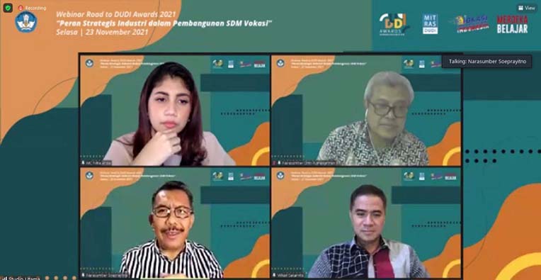 Sebagai salah satu rangkaian menuju malam anugerah DUDI Awards, Direktorat Kemitraan dan Penyelarasan Dunia Usaha dan Dunia Industri (Dit. Mitras DUDI), Direktorat Jenderal Pendidikan Vokasi Kemendikbudristek menggelar Webinar dengan tema “Peran Strategis Industri dalam Pembangunan SDM Vokasi” hari ini.
