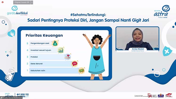 Hal tersebut pun disampaikan oleh Annisa Steviani, Certified Financial Planner pada webinar #SehatmuTerlindungi: Sadari Pentingnya Proteksi Diri, Jangan Sampai Nanti Gigit Jari (24/11).