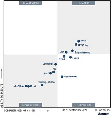 Gartner melakukan evaluasi terhadap para vendor yang termasuk ke dalam Magic Quadrant berdasarkan dua kriteria utama yakni kelengkapan visi dan kemampuan untuk mengeksekusinya. Di kedua kategori tersebut Gartner selalu mengakui Aruba sebagai Leader.