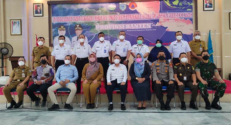 Menyikapi hal tersebut Dandim 0601/Pandeglang Letkol Inf Jani Setiadi menghadiri Kegiatan Sosialisasi Informasi Gempa Bumi dan Tsunami di Kabupaten Pandeglang Provinsi Banten, di Pendopo Kabupaten Pandeglang, Selasa (25/01/22).