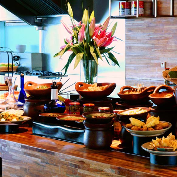 Mulai dari beragam makanan pembuka (asinan, sushi roll, empek-empek, dll) macam-macam takjil (kurma, aneka gorengan, dimsum, dll), salad, soup, hot dishes (beef rollade with mushroom soup, minutes steak, roasted chicken, dll), carving (kambing guling, yong tofu, roasted beef, dll), Live cooking (bakwan malang, mie kocok bandung, soto mie bogor, dll), beragam dessert (seasonal sliced fruits, tart, pudding, dll).