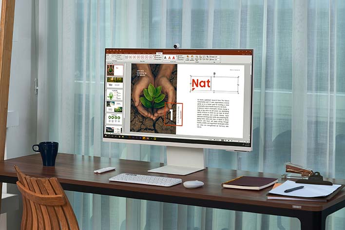 Samsung Smart Monitor M8 menghadirkan efisiensi kerja dengan desain yang sangat stylish. M8 memiliki tebal hanya 11.4mm, kurang dari sepertiga ketebalan model sebelumnya. Dengan desain flat-back yang menawan dan warna warm white yang modern, cocok untuk berbagai set up dan ruangan, mulai dari sudut home-office hingga layout ruangan terbuka sesuai preferensi pribadi pengguna.