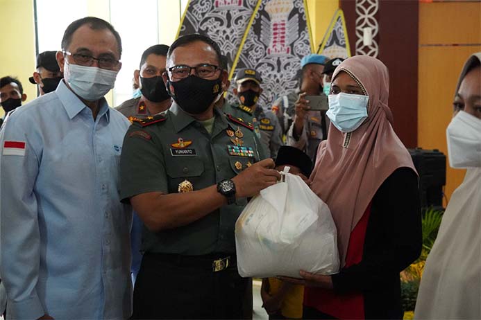 Brigjen TNI Yunianto dalam sambutannya mengatakan, kegiatan bantuan sosial seperti ini penting untuk terus diprogramkan sebagai wujud kebersamaan dan kepedulian kita dalam membantu meringankan beban masyarakat yang terdamapk Covid 19.