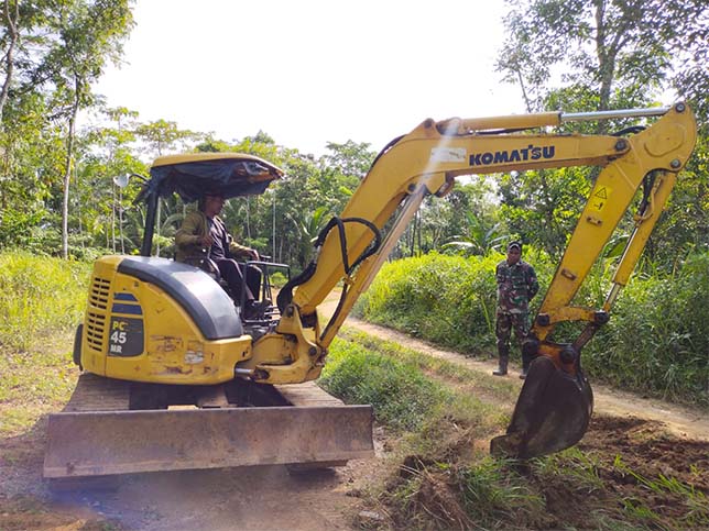 “Hari pertama, pelaksanaan kegiatan Pra TMMD kita mulai dengan pengukuran dan pembersihan lahan dengan mengerahkan 1 buah excavator mulai dari titik nol sampai ke titik akhir,“ ucap Danramil.