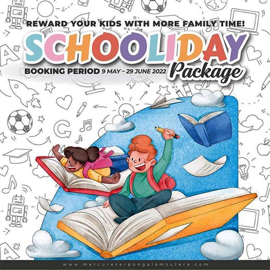 Mercure Serpong Alam Sutera menyediakan paket liburan sekolah dengan harga Rp. 908.000 Nett/malam. Adapun paket ini sudah termasuk 1 malam menginap di tipe kamar Superior, sarapan untuk 2 orang dewasa dan 2 anak-anak di bawah 10 tahun, hadiah spesial untuk anak dan juga Kids Activity khusus akhir pekan (sesuai dengan jadwal yang sudah ditentukan).
