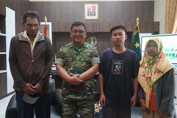 Ncep Billal didampingi prajurit TNI AD dari Korem 064/MY menjemput Ahim yang didampingi dua anaknya yakni Imron dan Ami.