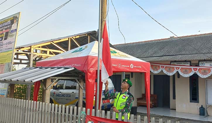 Lebih lanjut Babinsa menegaskan, apabila kita melihat bendera merah putih yang berada di pemerintah desa tampak sobek, kusam dan lusuh, kami akan menegur supaya mengganti dengan yang lebih layak lagi, sebagai bentuk cinta pada tanah air kita sendiri serta menghargai perjuangan para pahlawan yang gagah berani membela negara ini.