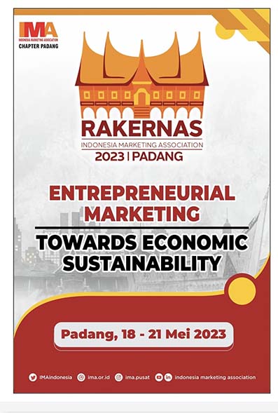 Mengangkat tema „Entrepreneurial Marketing: Towards Economic Sustainability‟, agenda Rakernas IMA Padang 2023 akan berfokus untuk membahas berbagai aspek tentang marketing, baik yang telah, sedang, dan akan dilaksanakan, juga mendorong industri pariwisata dan ekonomi kreatif yang berkelanjutan sebagai penggerak roda perekonomian di Sumatera Barat.