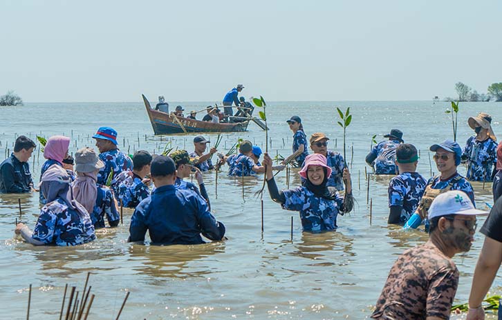 Perubahan iklim memperparah hilangnya keanekaragaman hayati dengan mengubah kondisi fisik dan kimiawi ekosistem, seperti suhu, curah hujan, dan kenaikan permukaan air laut. Kegiatan penanaman ini didukung oleh Yayasan Sentral Rehabilitasi Mangrove (SRM), sebuah lembaga non-profit lokal yang berfokus pada pelestarian lingkungan, khususnya rehabilitasi hutan bakau. Program ini bertujuan untuk memulihkan habitat hutan bakau yang sangat penting untuk menjaga keanekaragaman hayati, melindungi garis pantai, dan memitigasi perubahan iklim.