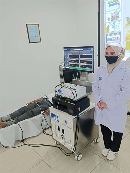 Dalam kunjungan Tim NIVA SCNP ke RS PMI Bogor, selain paparan perihal perkembangan riset dan aspek teknis-medis terkait NIVA, Tim SCNP juga mengadakan kegiatan screening terbatas bagi manajemen dan staf internal RS PMI Bogor. Animo dan antusiasme personel RS PMI Bogor sangat besar terhadap hasil screening yang ditampilkan oleh NIVA.