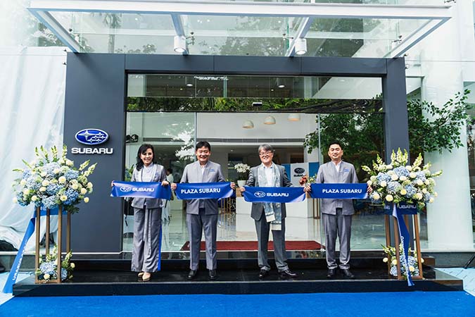 Turut hadir bersama Shoji-san, pada peresmian ini; Subaru Koizumi, Overseas Sales & Marketing Manager, Subaru Corporation Japan, Paula Dewiyanti, Board of Director, Plaza Capital Group, Arie Christopher, Chief Executive Officer, Subaru Indonesia, dan Carlos Sanusi, Chief Executive Officer, Plaza Subaru.