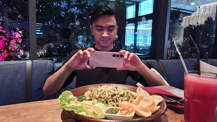 Nah, untuk perekaman video, kadang kita akan kerepotan untuk memasukkan seluruh teman atau keluarga yang hadir di bukber ke dalam satu frame video. Kamu mungkin perlu berpindah-pindah tempat dan mencari angle yang tepat. Dengan Galaxy A35 5G tak perlu serepot itu.