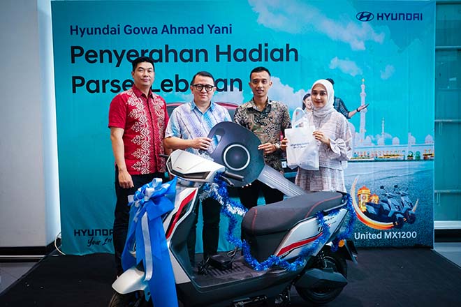 Tak disangka rejeki berdatangan padanya, ibarat mendapatkan durian runtuh, Mohamad mendapatkan tambahan parsel gratis motor Listrik dari Hyundai Gowa sebagai hadiah sekaligus ucapan tanda terima kasih atas pilihannya untuk memilih diler pembelian di Hyundai Gowa.