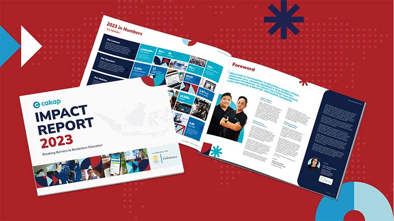Impact Report 2023 yang bertajuk Breaking Barriers to Borderless Education menyoroti bagaimana perusahaan edukasi berbasis teknologi seperti Cakap, mampu menjawab persoalan di bidang pendidikan, termasuk masih belum meratanya peningkatan keterampilan di kalangan siswa maupun pekerja. Raf dan Christine adalah dua perwujudan dari strategi Mendorong Pendidikan Inklusif dan Pengembangan Keterampilan untuk Kelompok Marginal dan Akses Pendidikan Berkualitas untuk Semua dan implementasinya di dunia nyata.