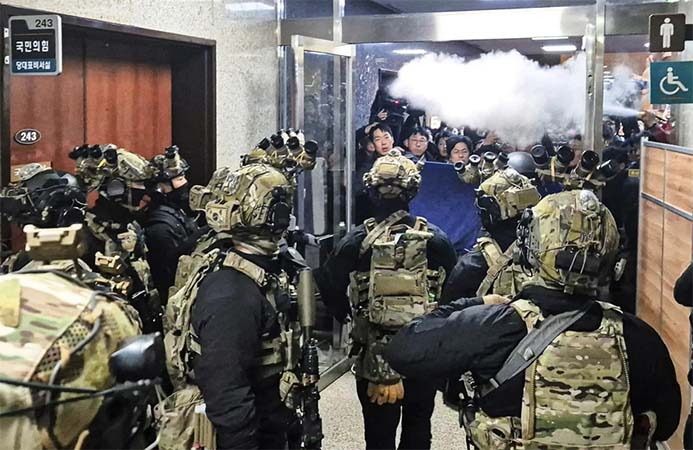 Hilang kesabaran, Rabu (3 Desember) lalu, Presiden menunjuk Jenderal Park An-su sebagai Panglima Darurat Militer. Adu “sprint” antara militer yang berupaya mendobrak gedung Parlemen, dengan 190 anggota Majelis yang mengambil keputusan menolak Darurat Militer.