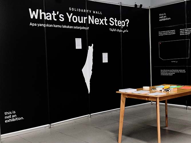 Pameran ini terselenggara atas kolaborasi antara Against Dehumanization, MRT Jakarta, refu+ure Indonesia, Students for Justice for Palestine (SJP) ITB, The Palestinian Museum, Serrum Arthandling, dan Merdekast